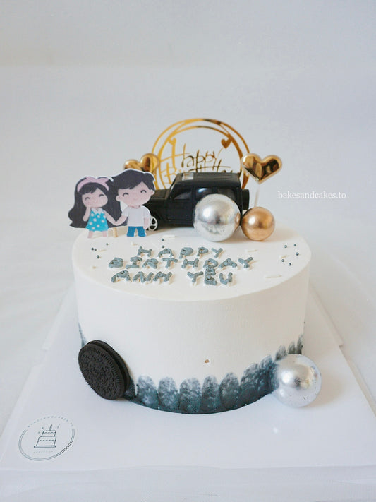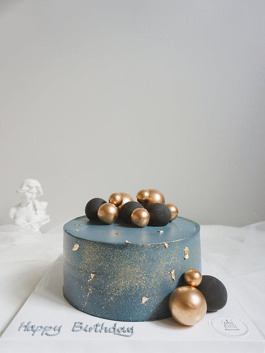 Black Ribbon Cake with Hearts (Blue)